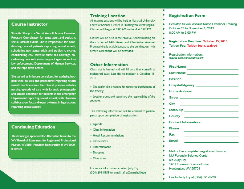 These two tri-fold brochures were created with Adobe Photoshop and InDesign. The brochures were placed on the MUFSC website as PDF downloads and printed as handouts for related conferences and training events.